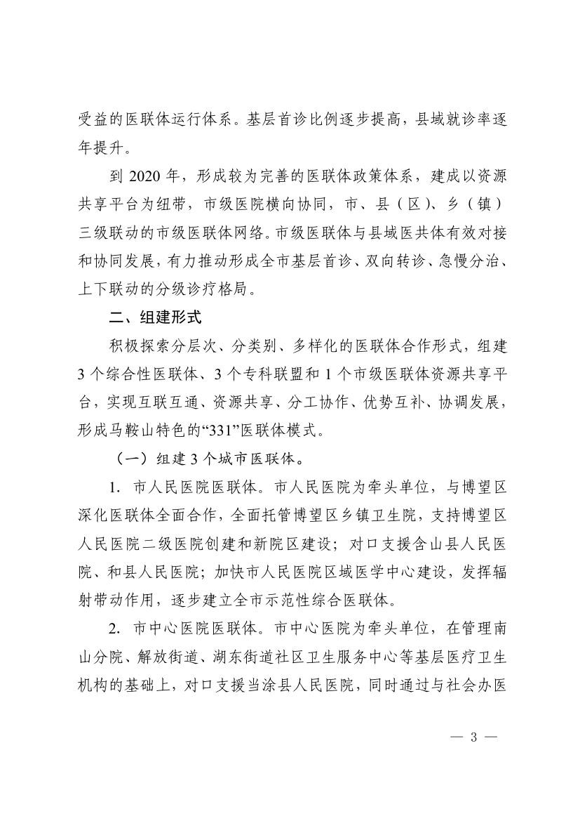 印发关于大力推进马鞍山市市级医联体建设实施方案的通知